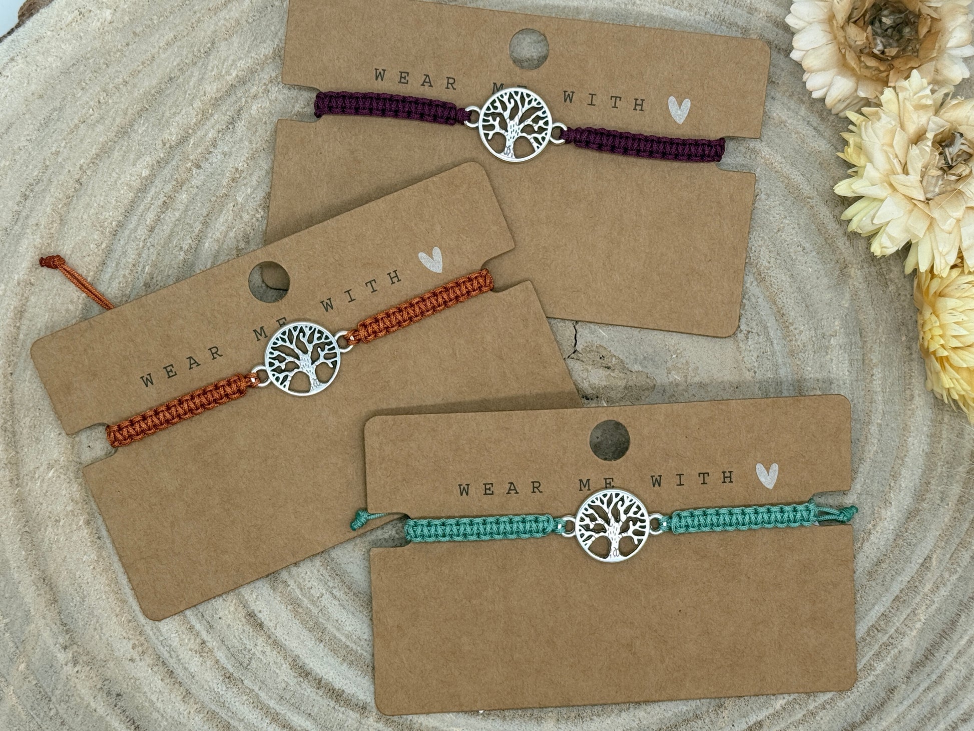 Freundschaftsarmband Makramee Armband Lebensbaum Edelstahl Silber