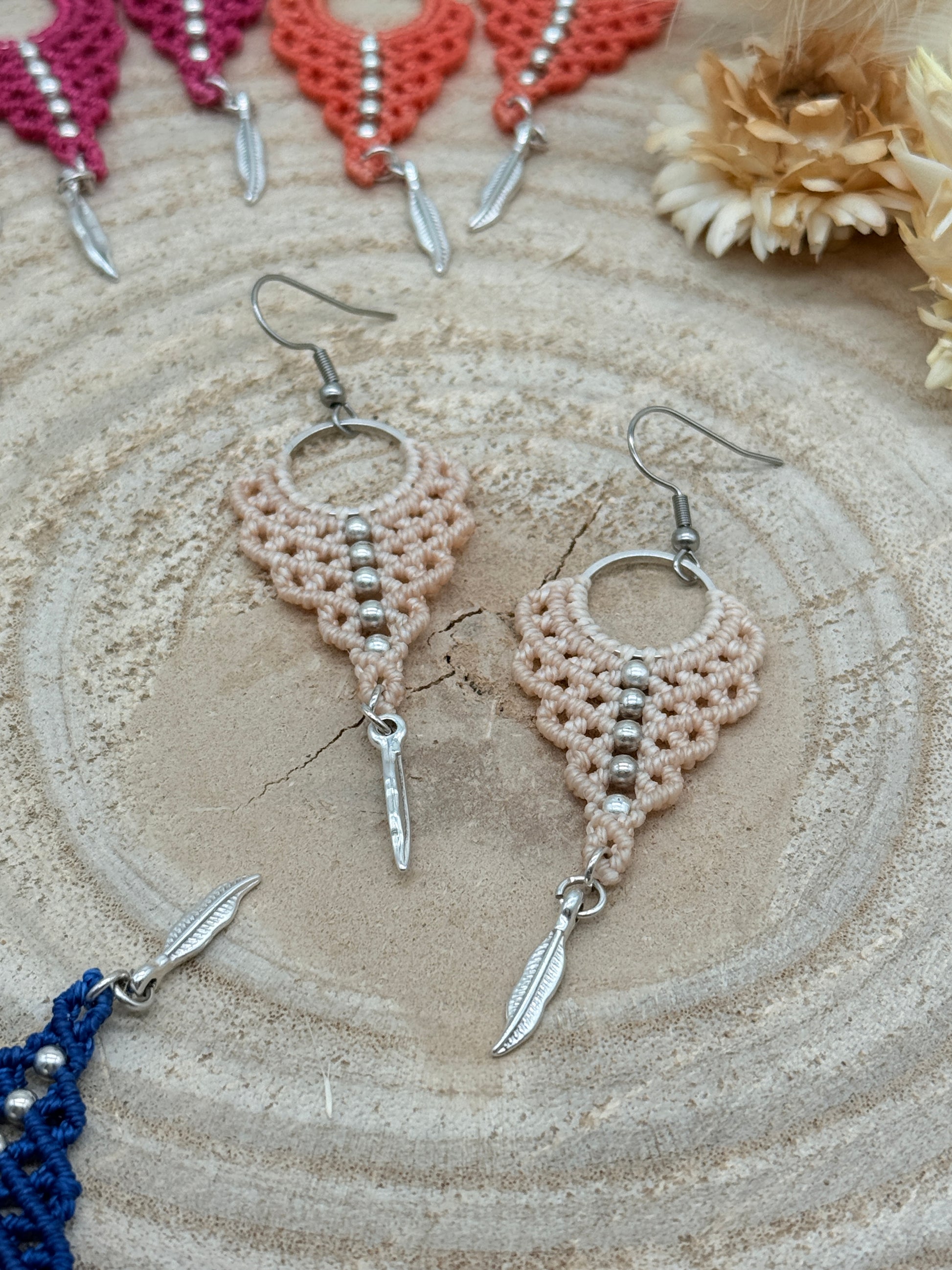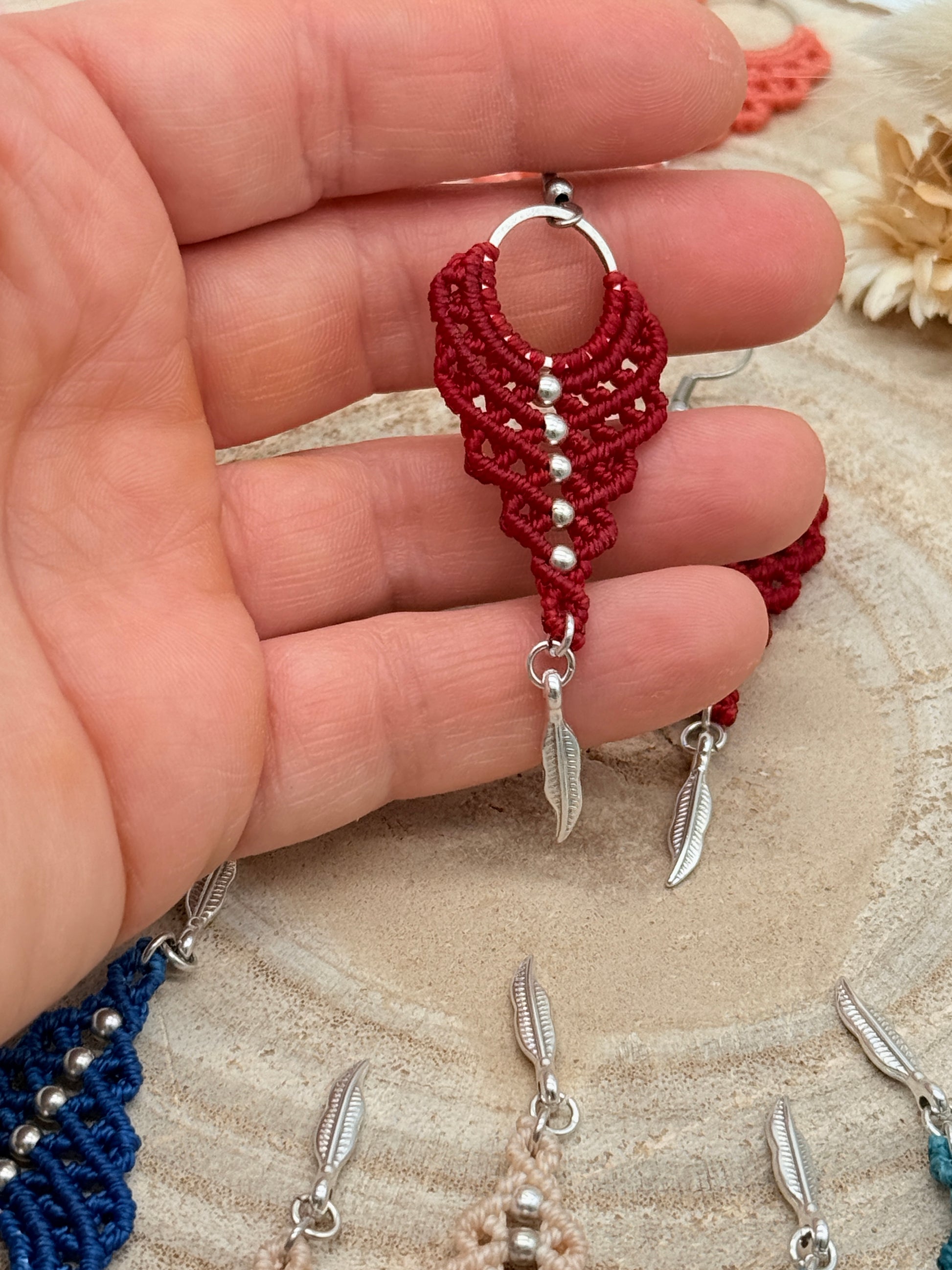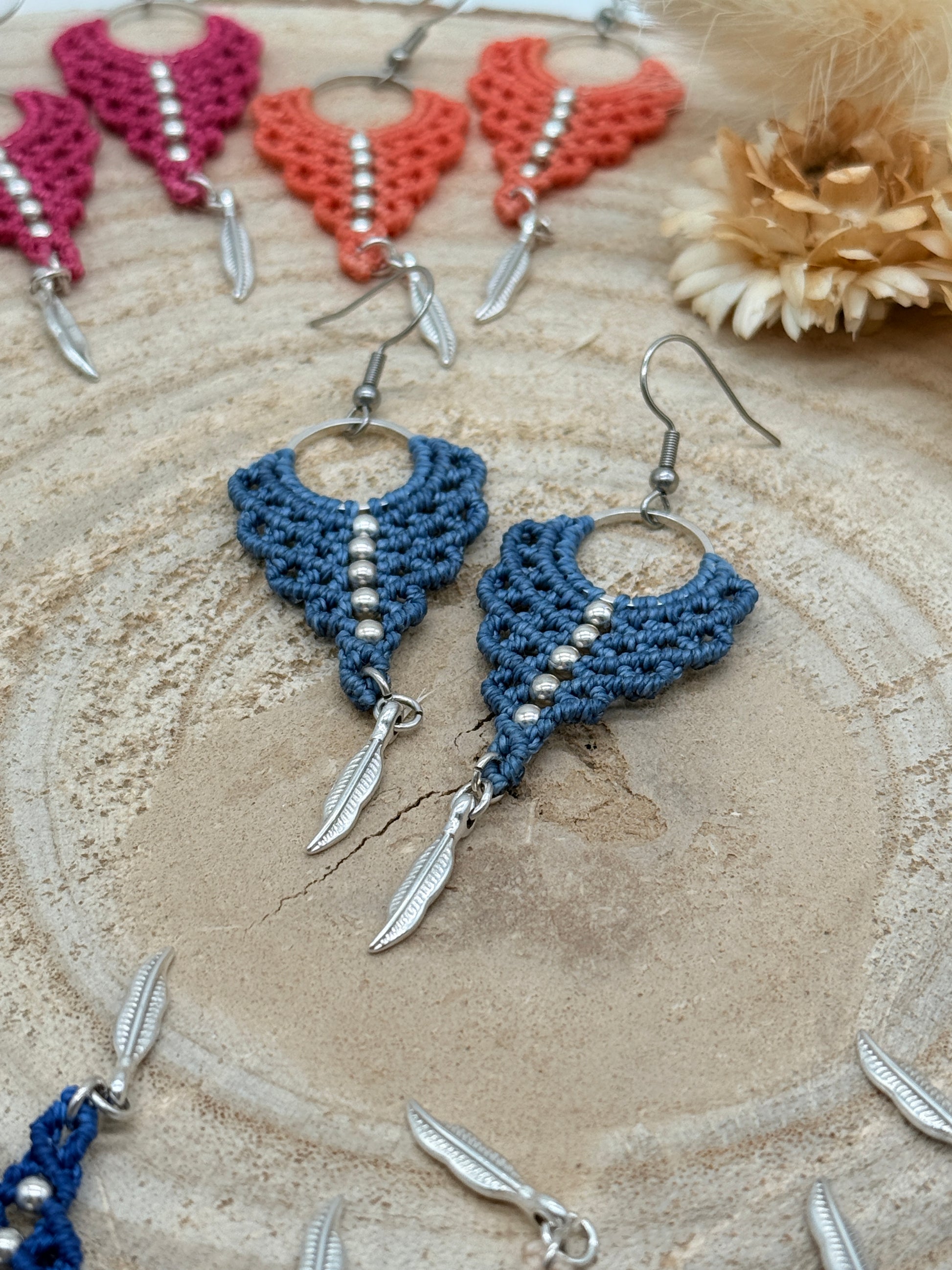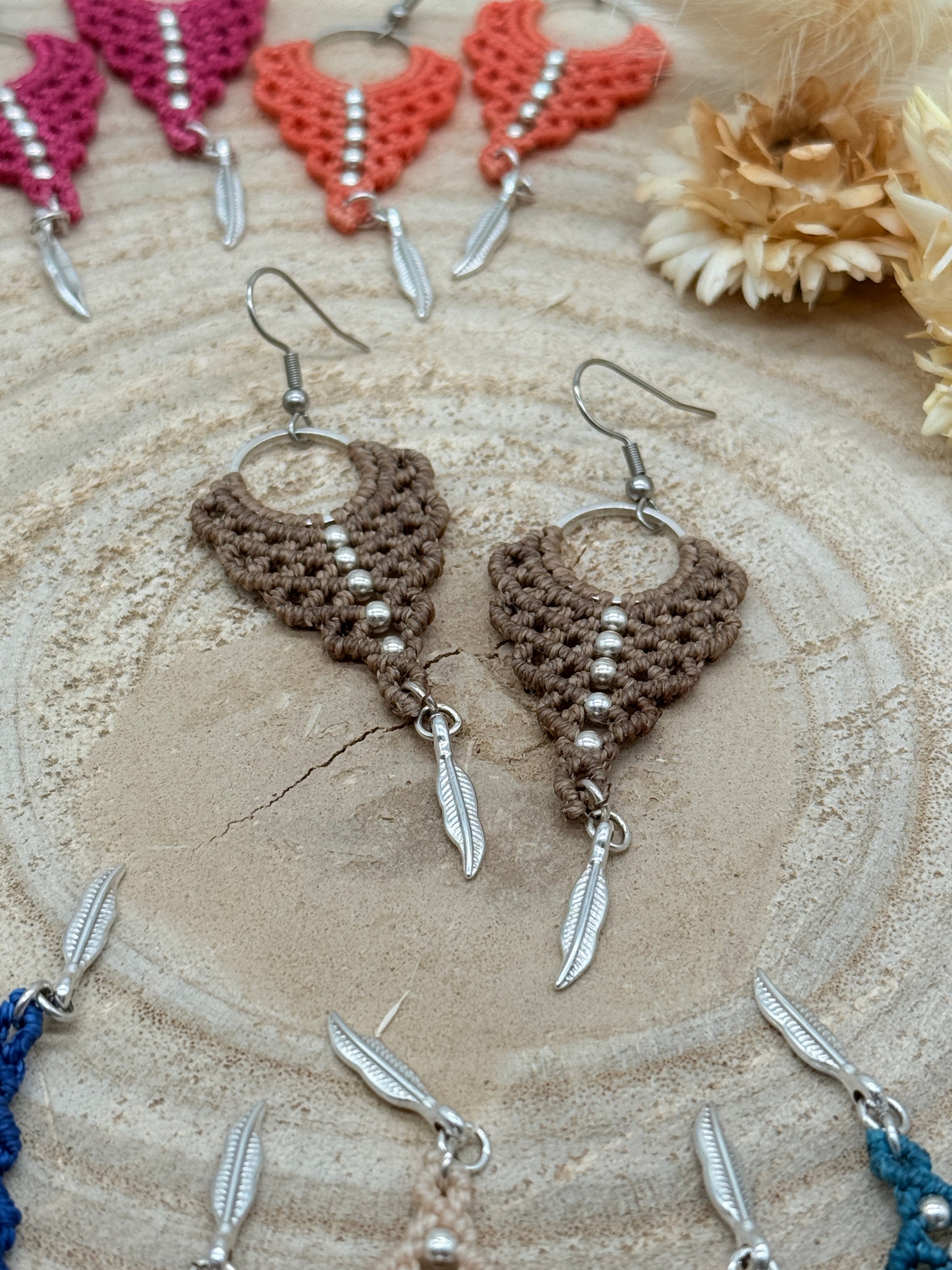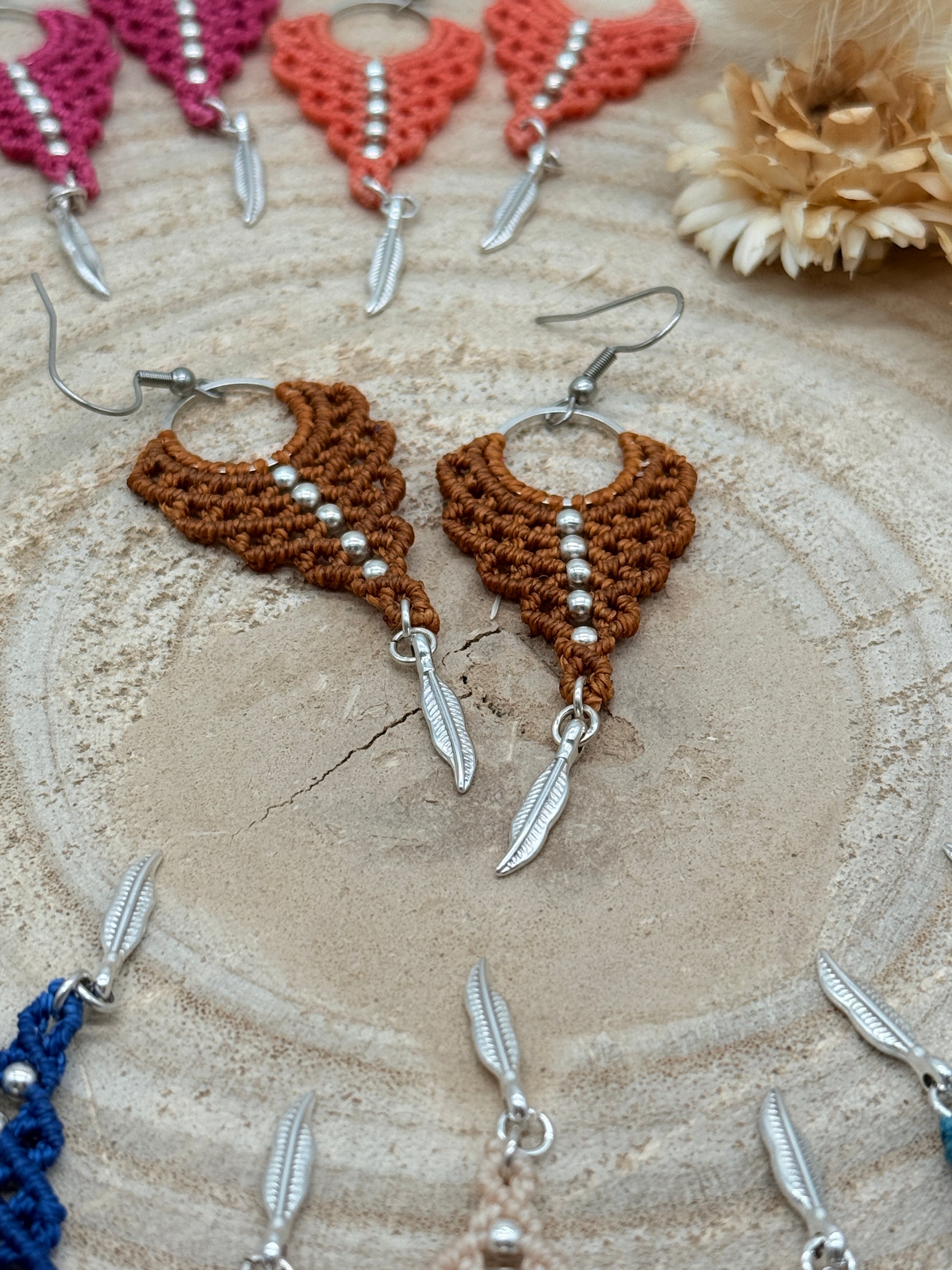 Einzigartiger Makramee Ohrhaenger Ohrring Claire mit Feder (1 Paar)