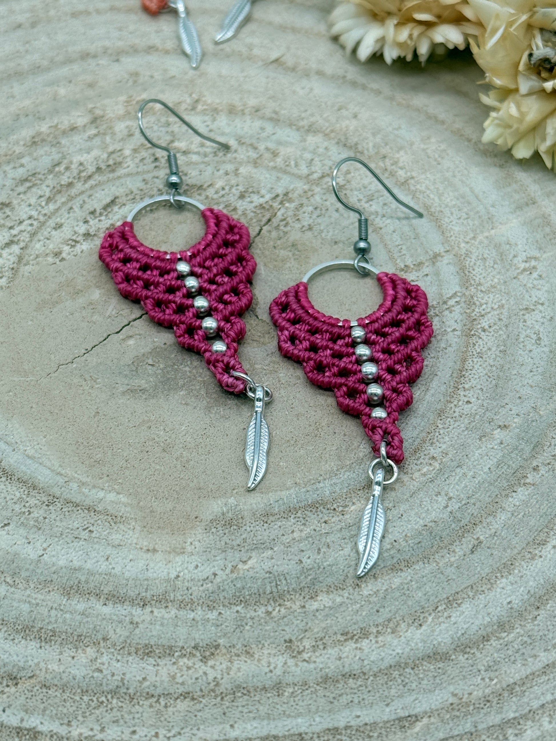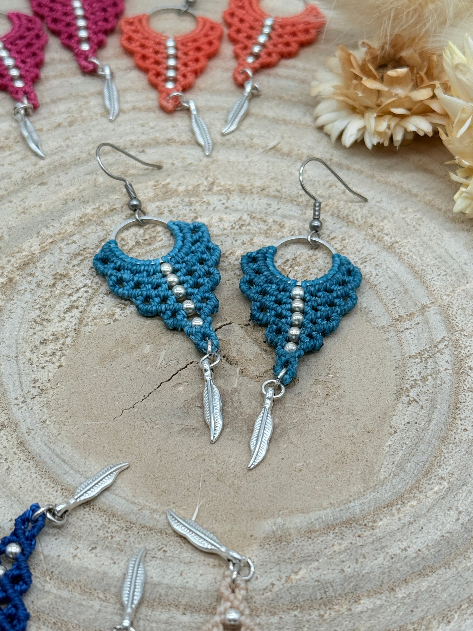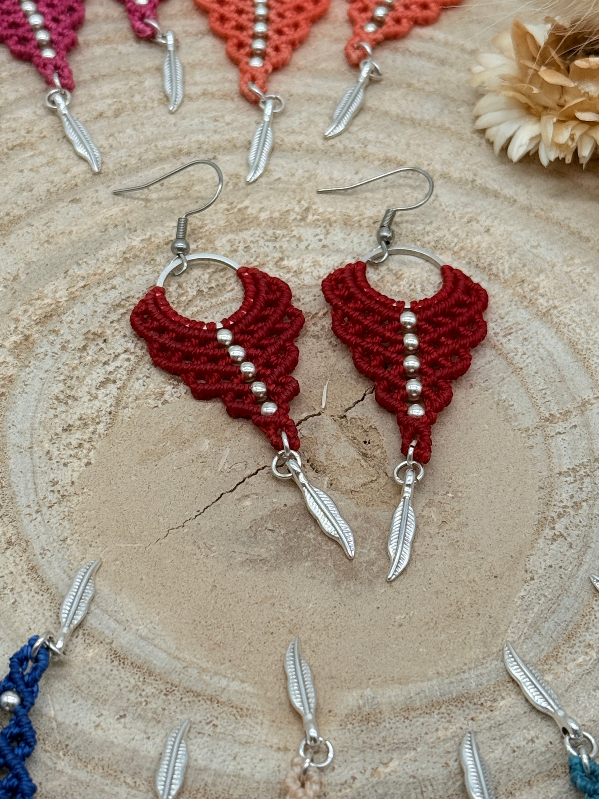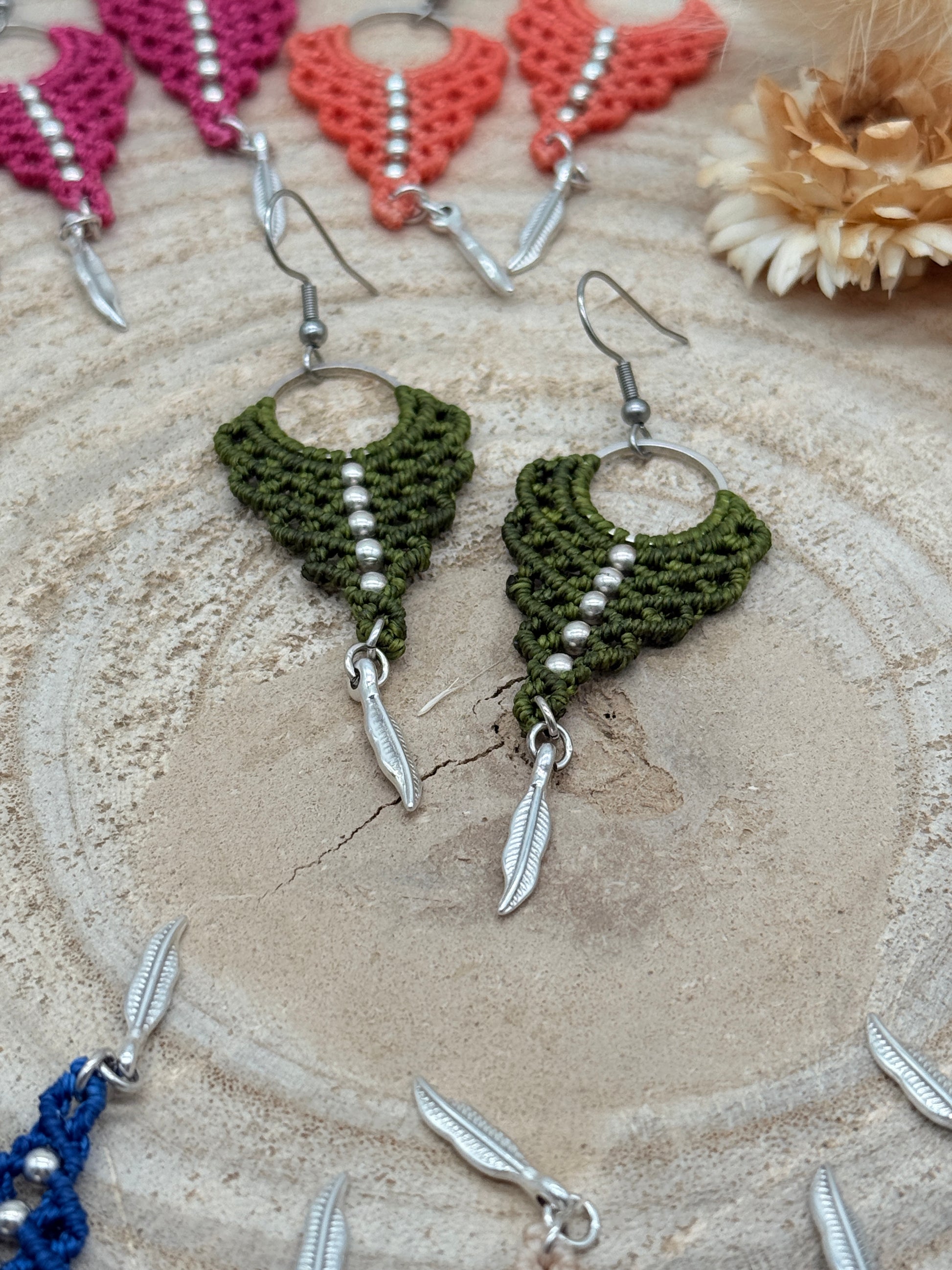 Einzigartiger Makramee Ohrhaenger Ohrring Claire mit Feder (1 Paar)