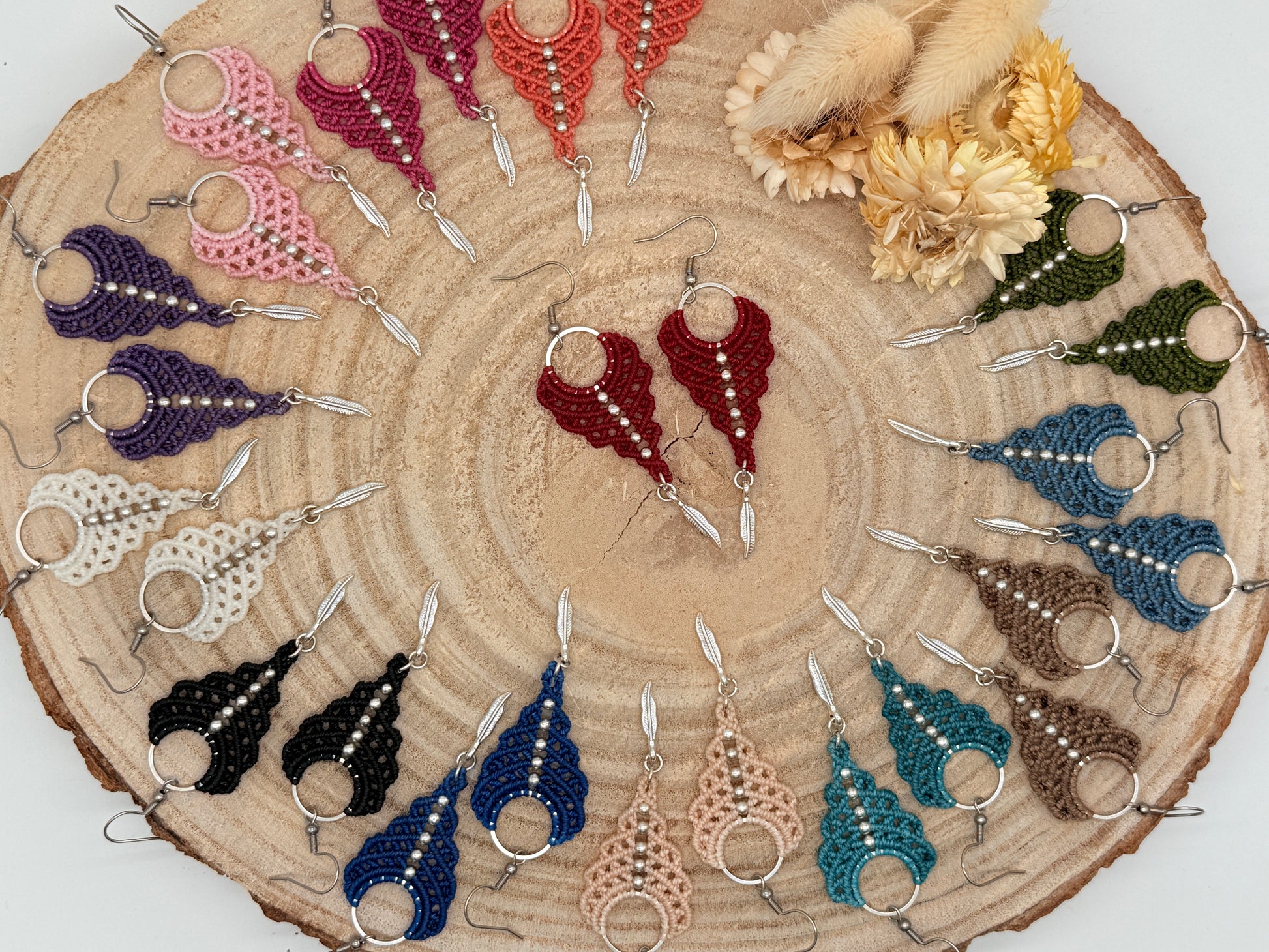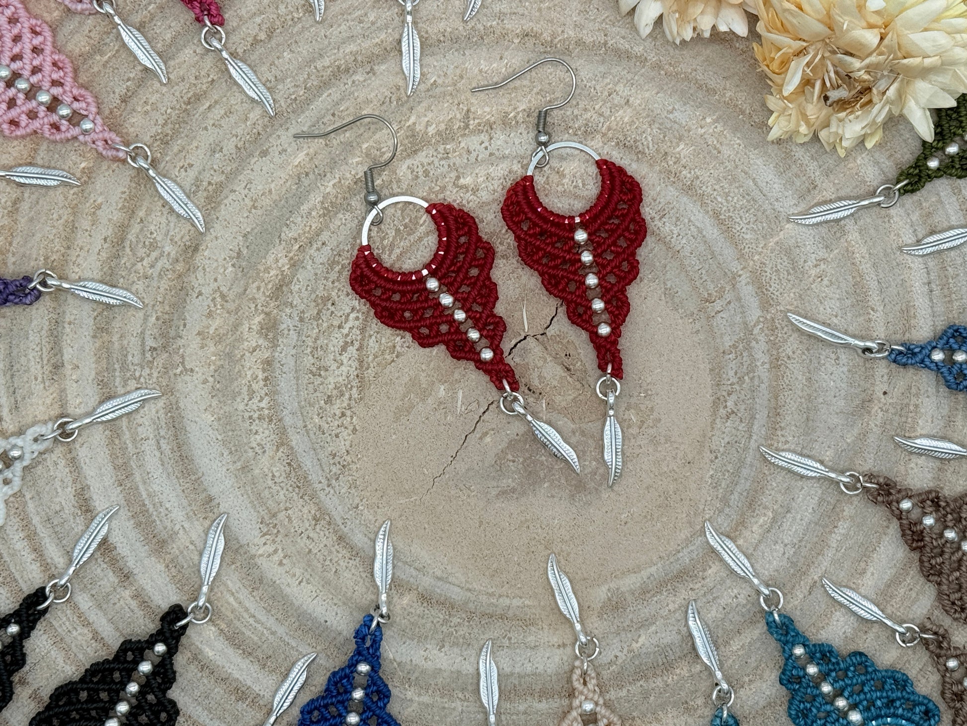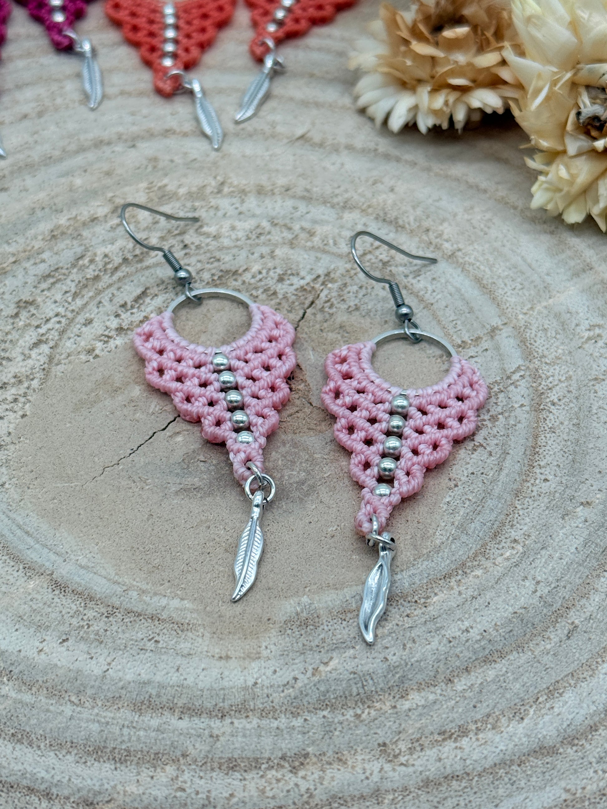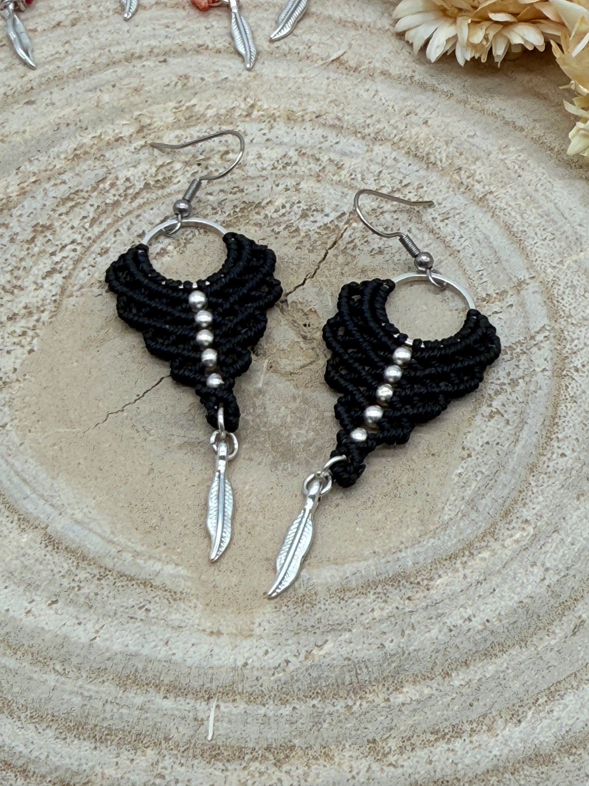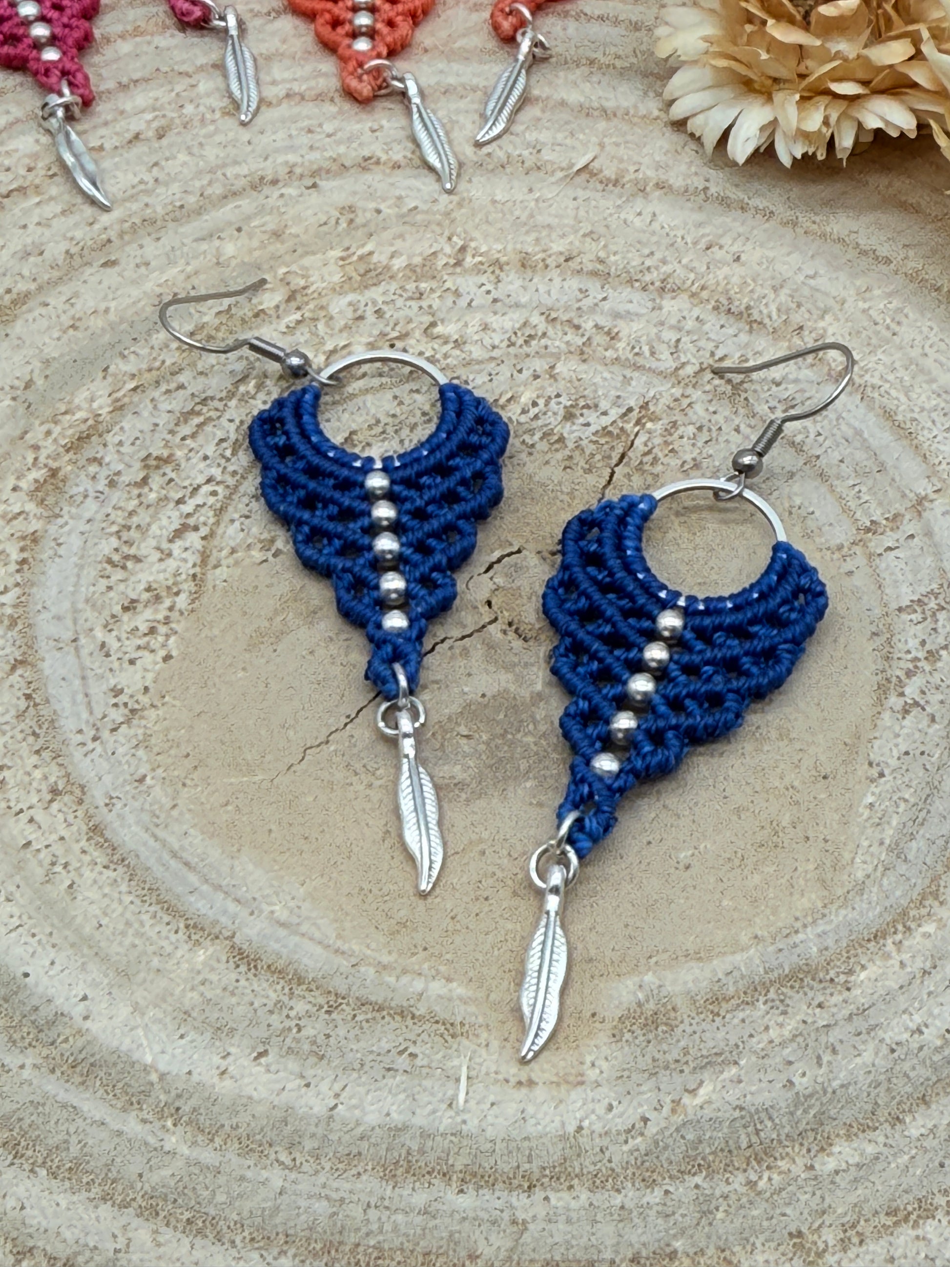 Einzigartiger Makramee Ohrhaenger Ohrring Claire mit Feder (1 Paar)