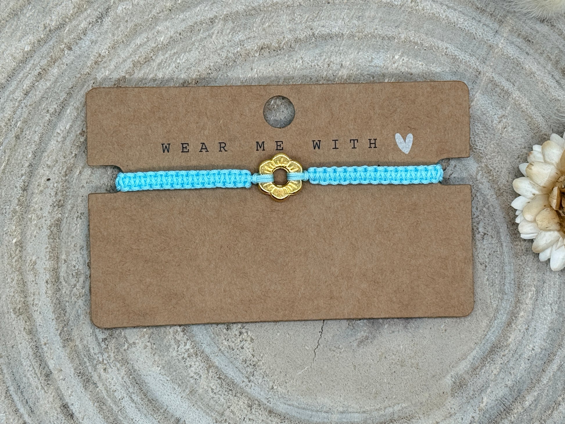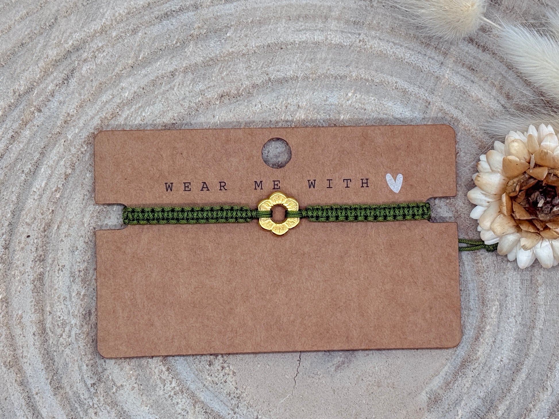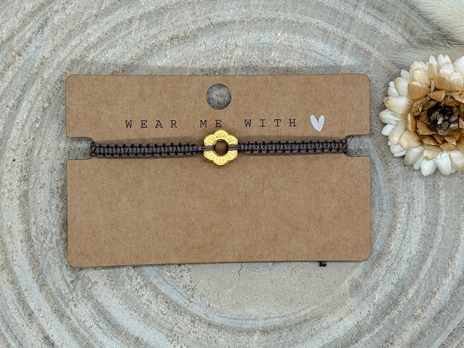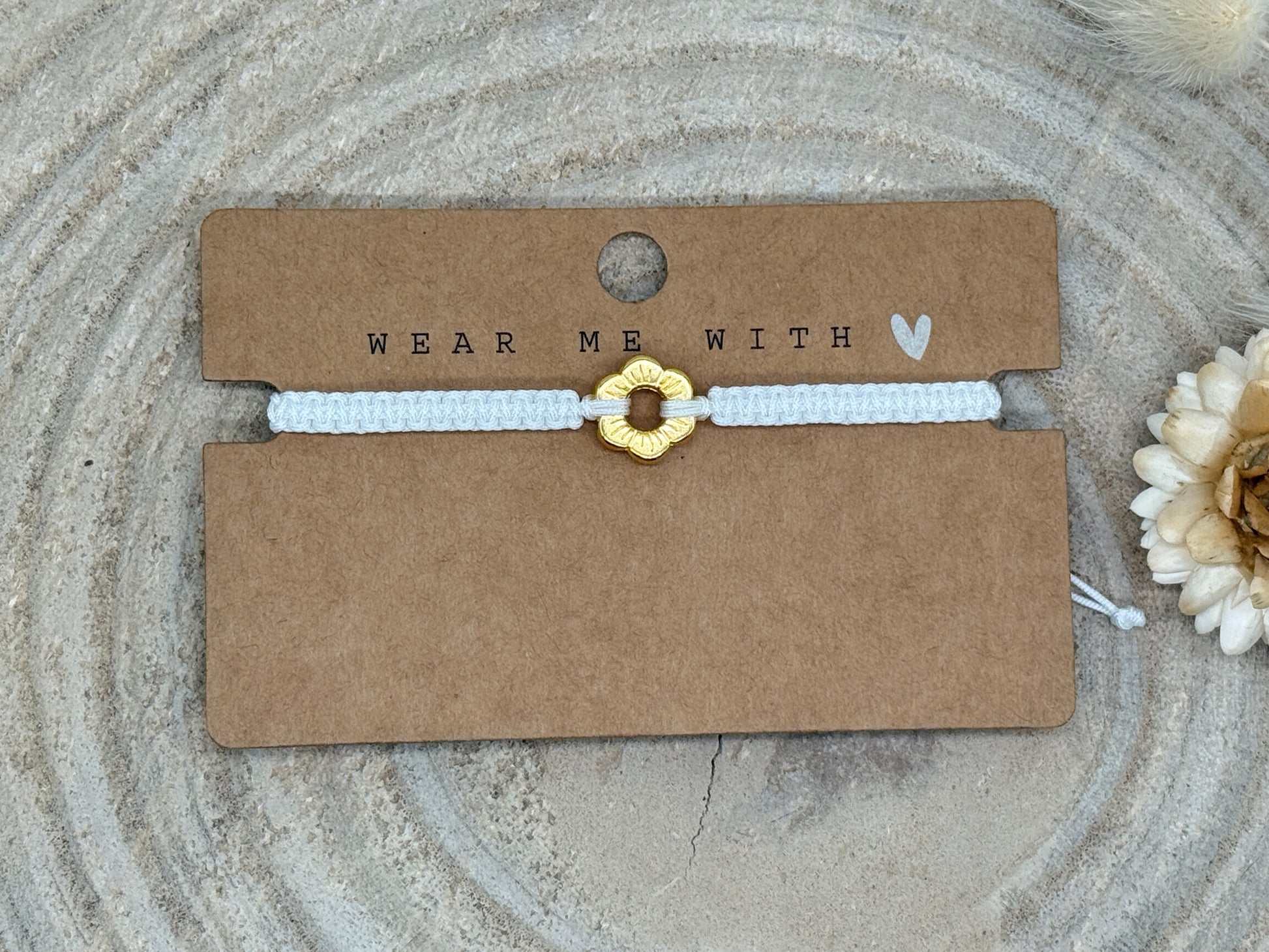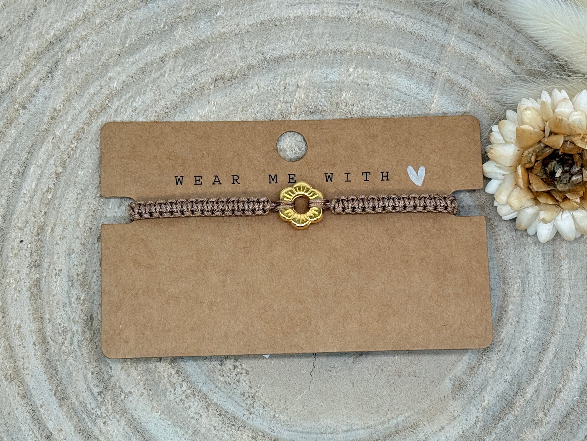 Makramee Armband Freundschaftsarmband kleine Blume Edelstahl vergoldet