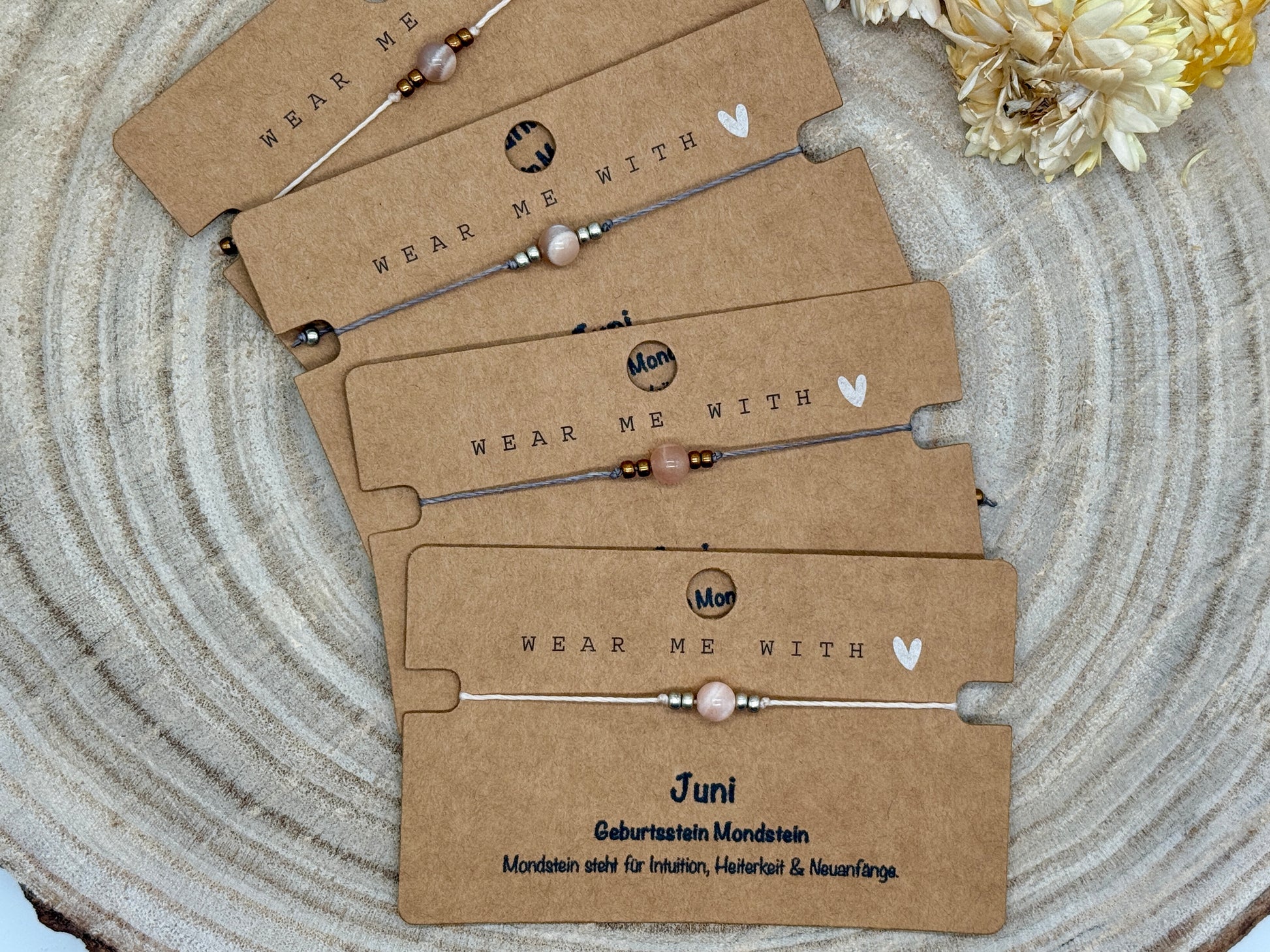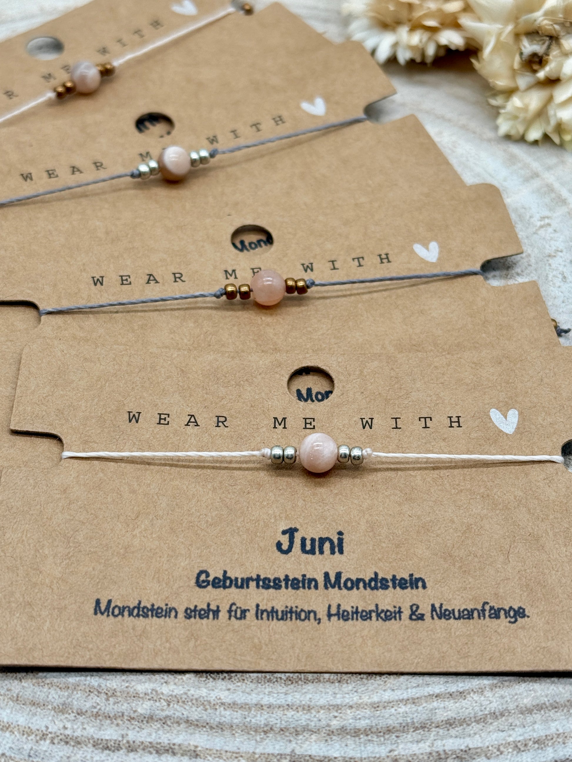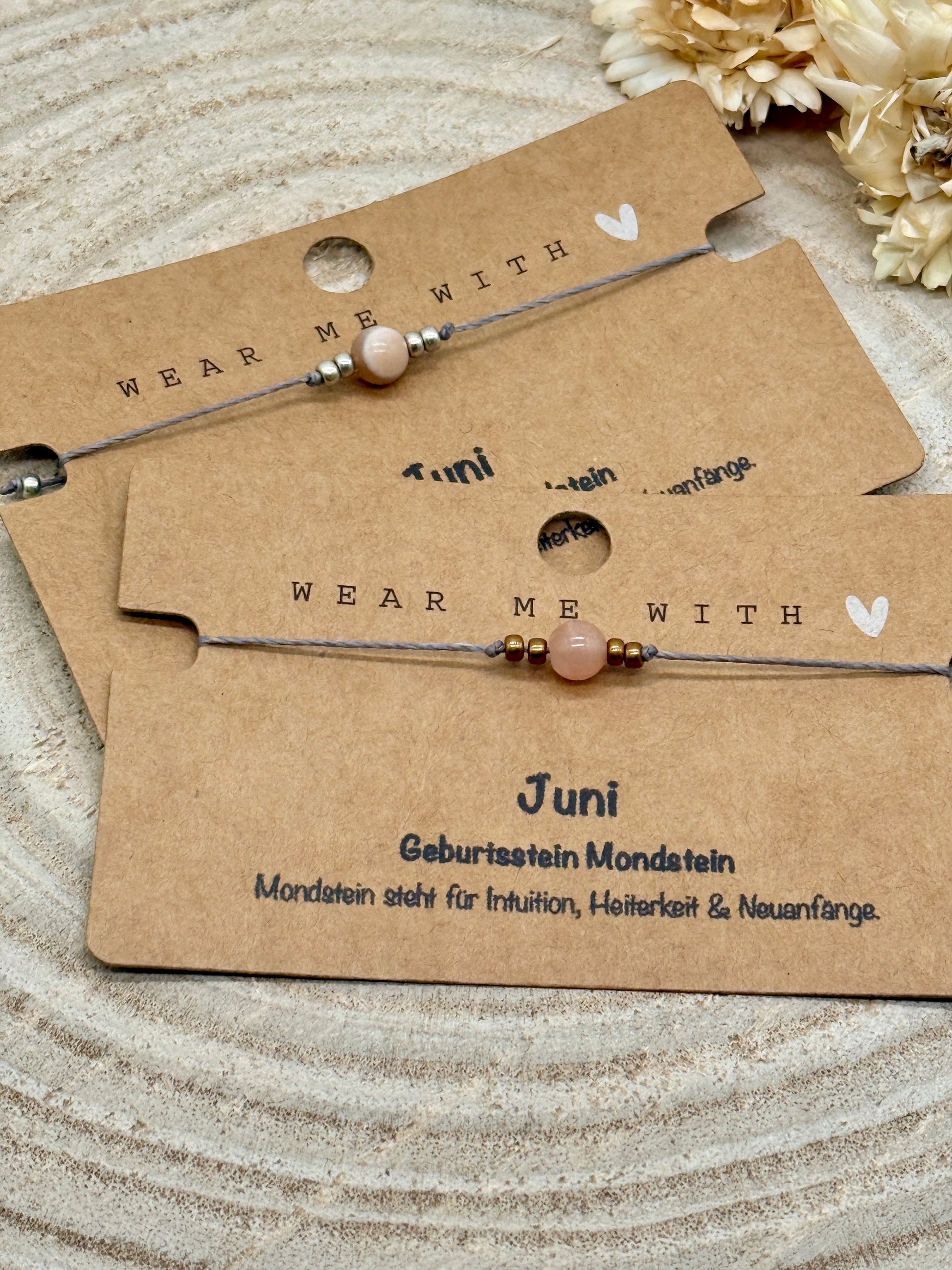 Geburtsstein Juni Sternzeichen Halbedelstein Armband Mondstein