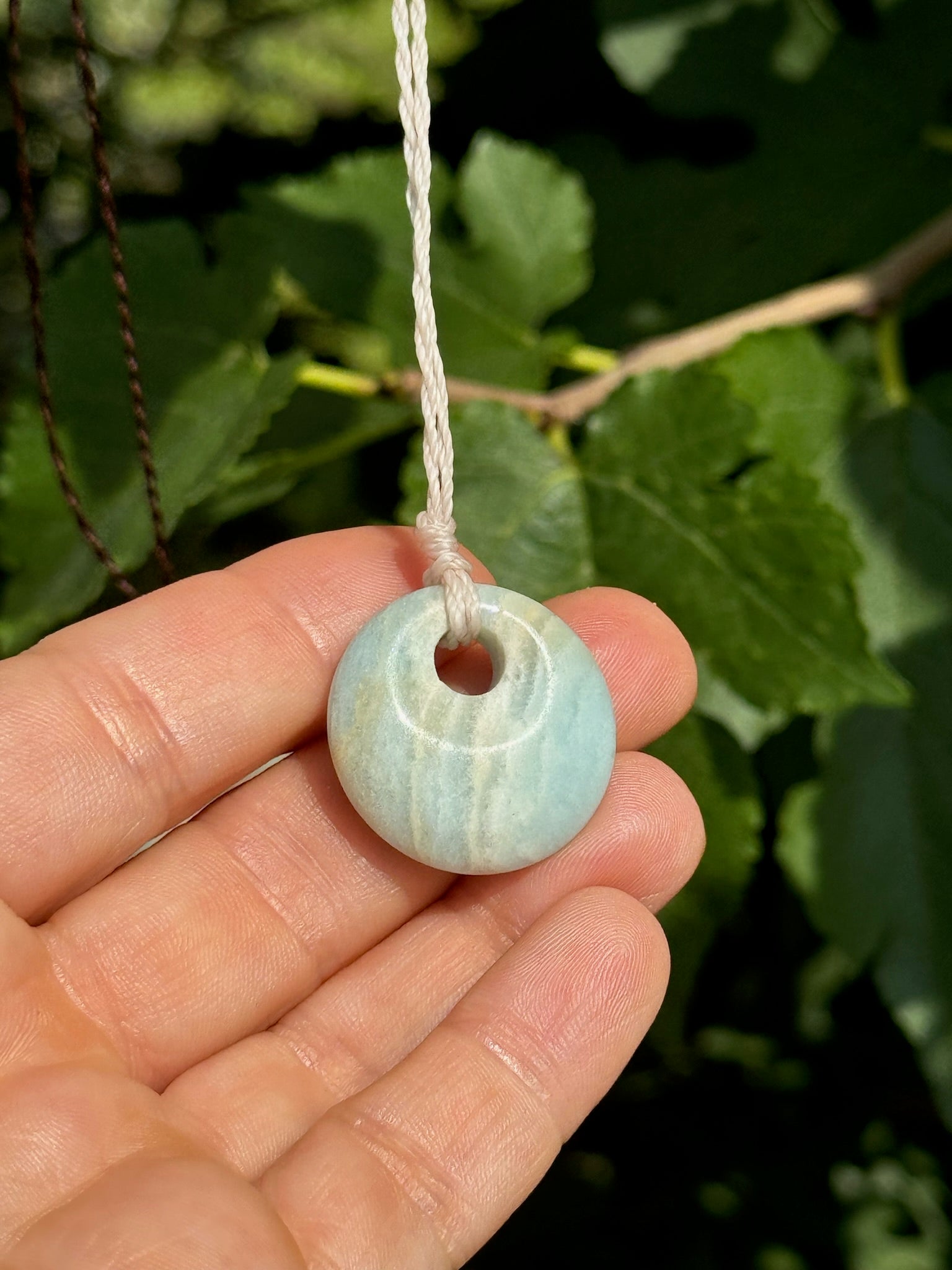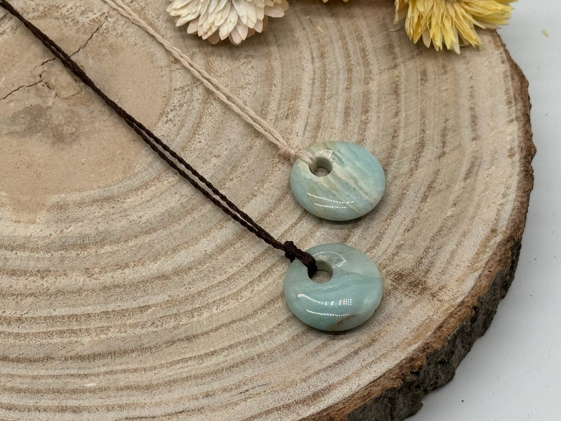 Makramee Schmuck Choker Halbedelstein Kette mit Amazonit Stein