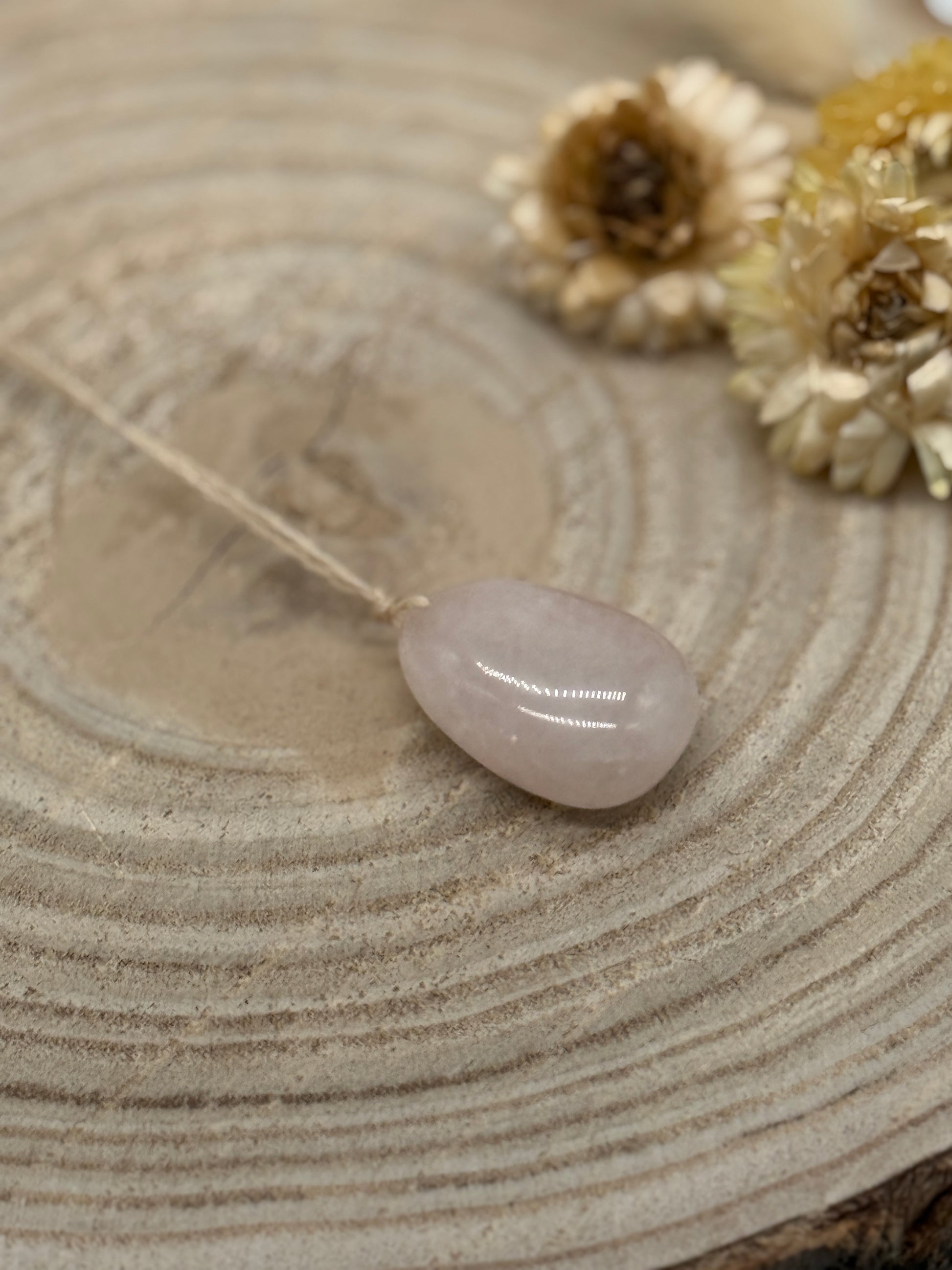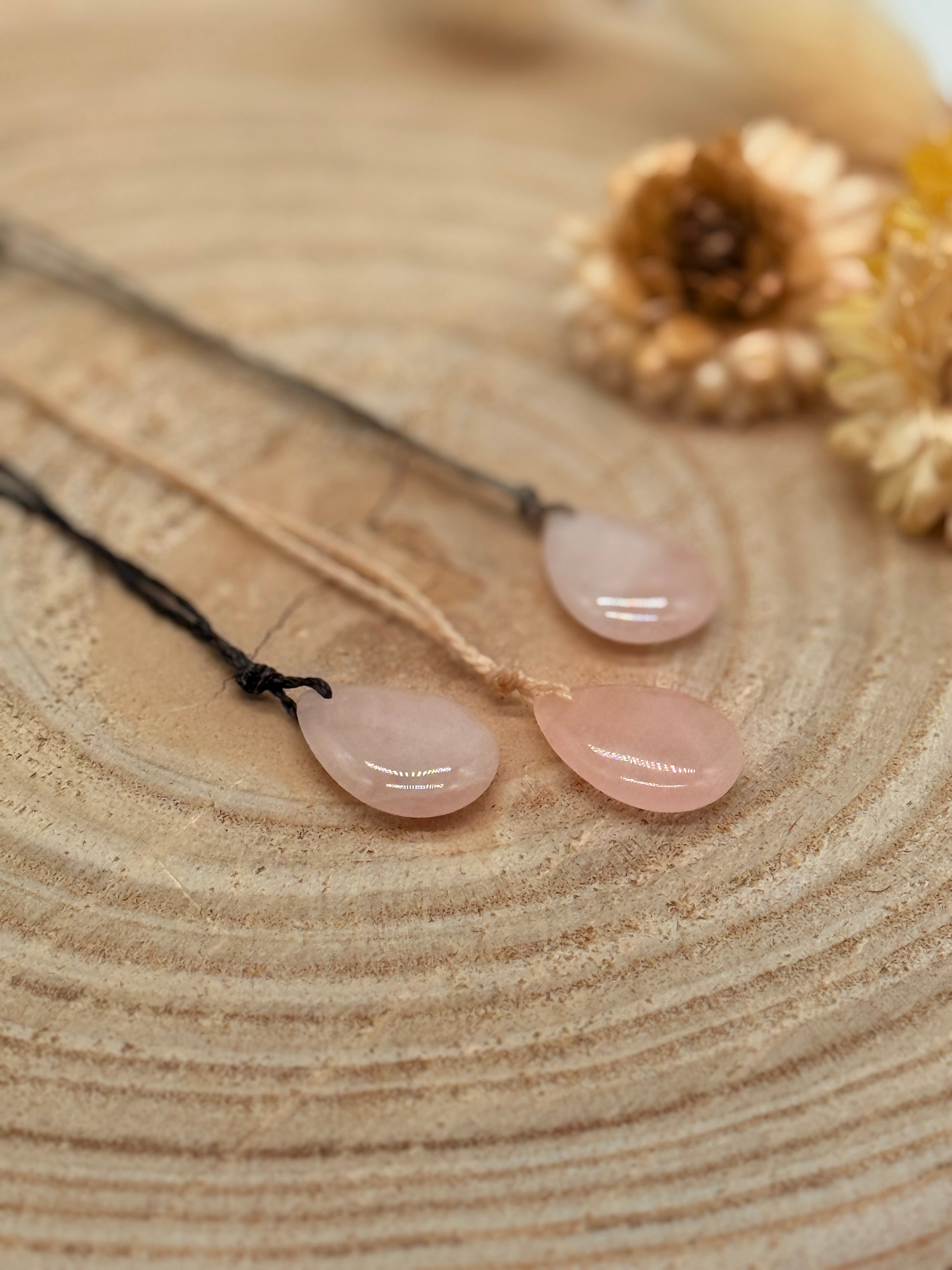 Makramee Choker Halbedelstein Kette Rosenquarz