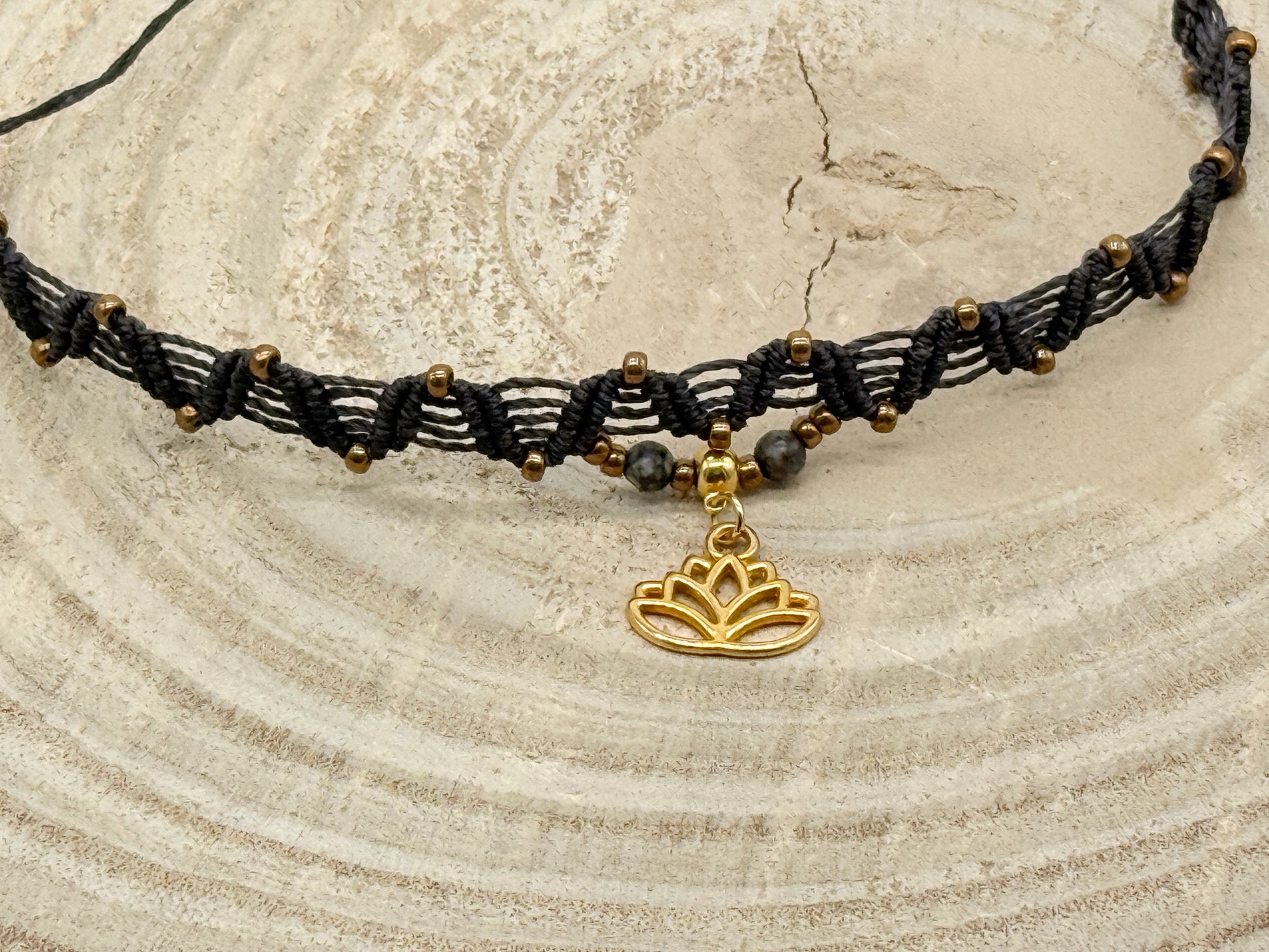 Makramee Choker Halskette Anhänger Lotusblume silberfarbenen Edelstahl