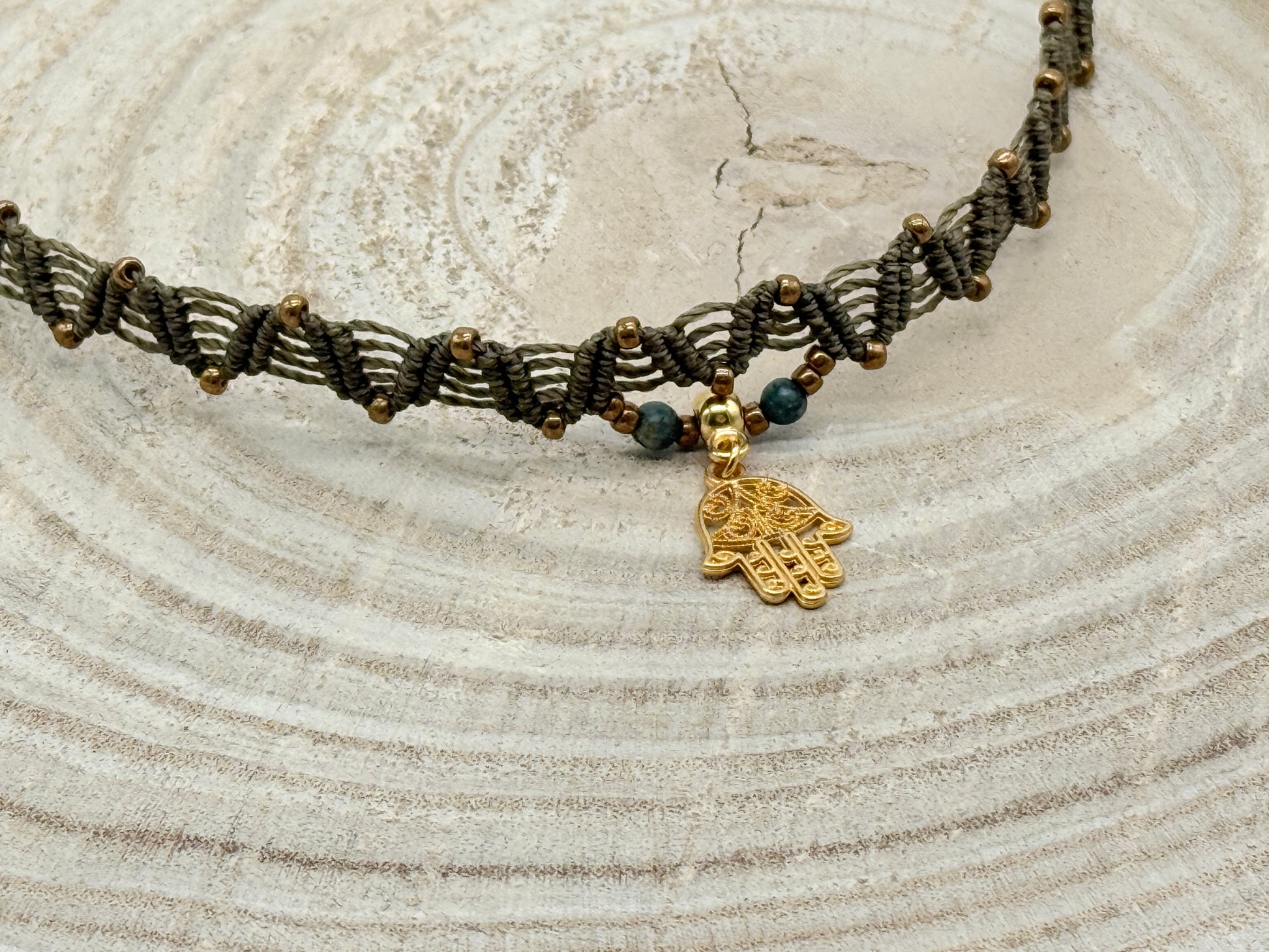 Makramee Choker Halskette Anhänger Mandala Hand silberfarbenen Edelstahl