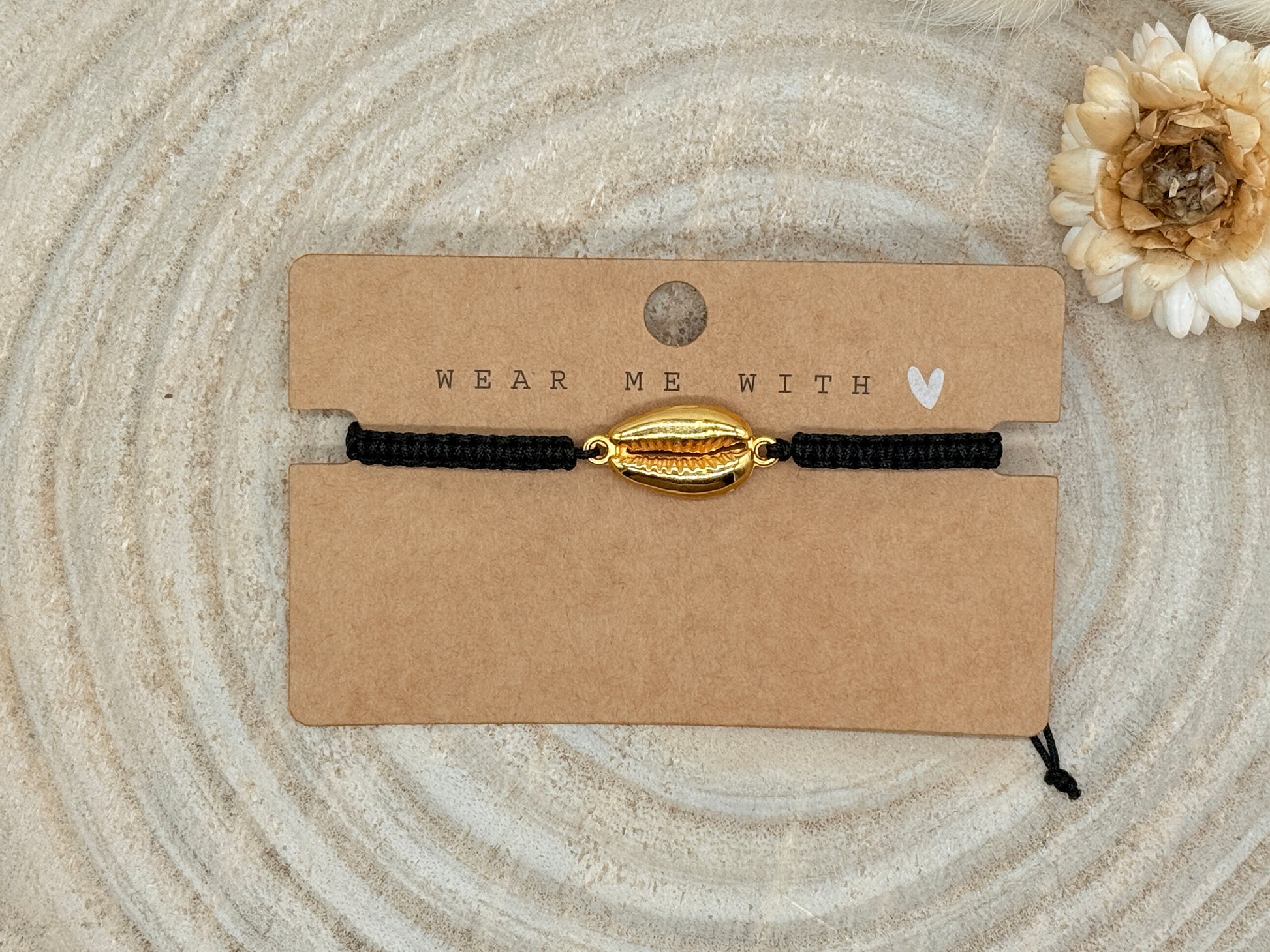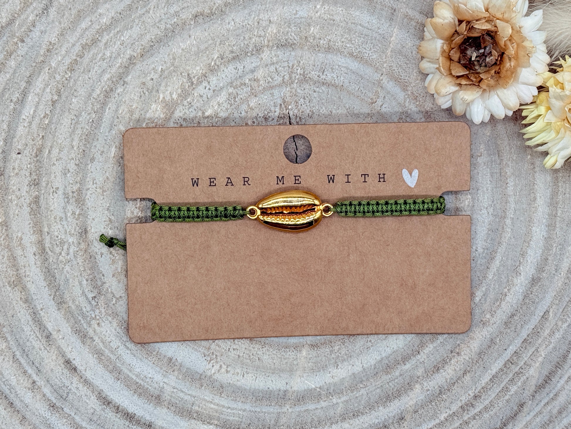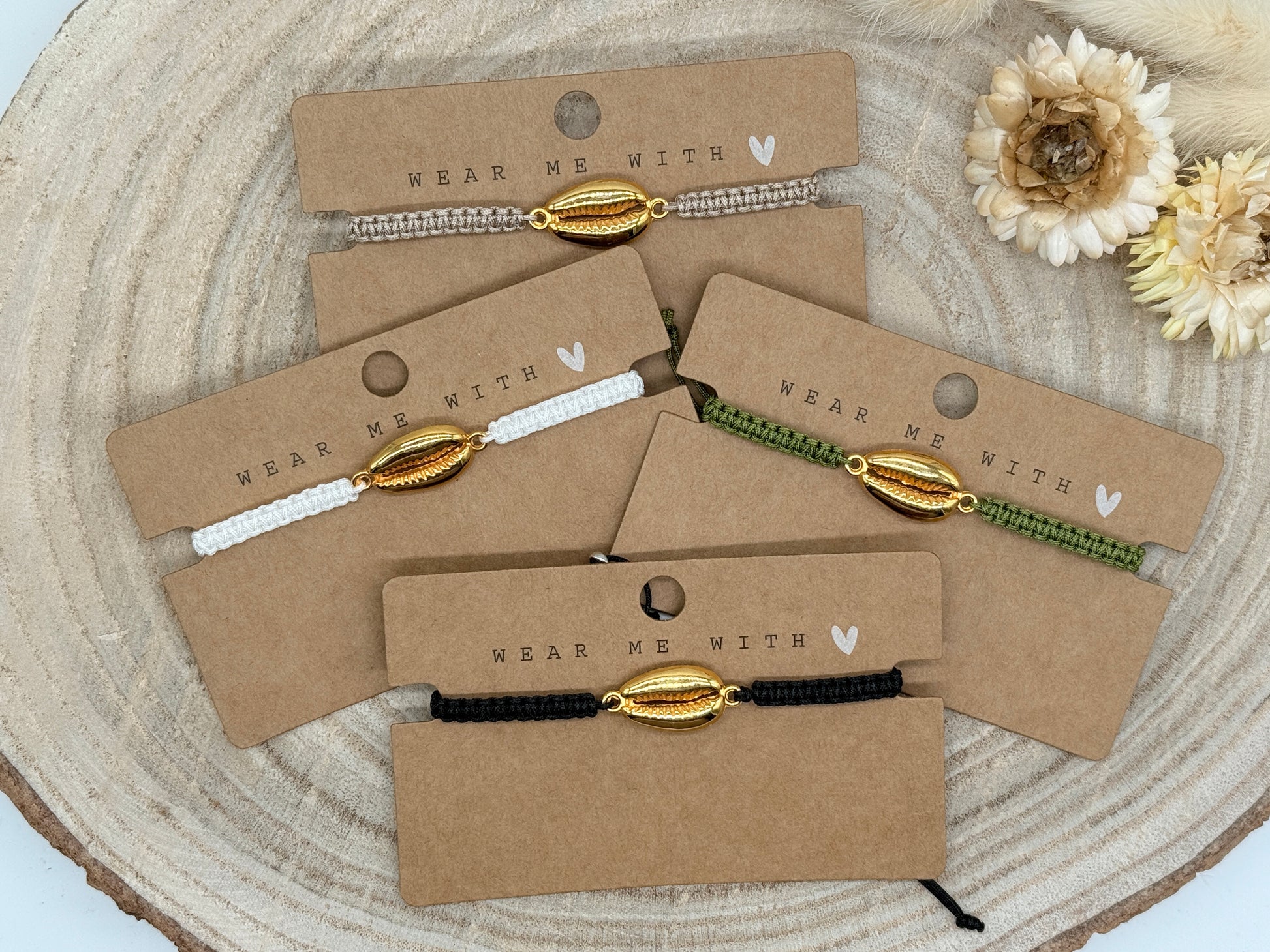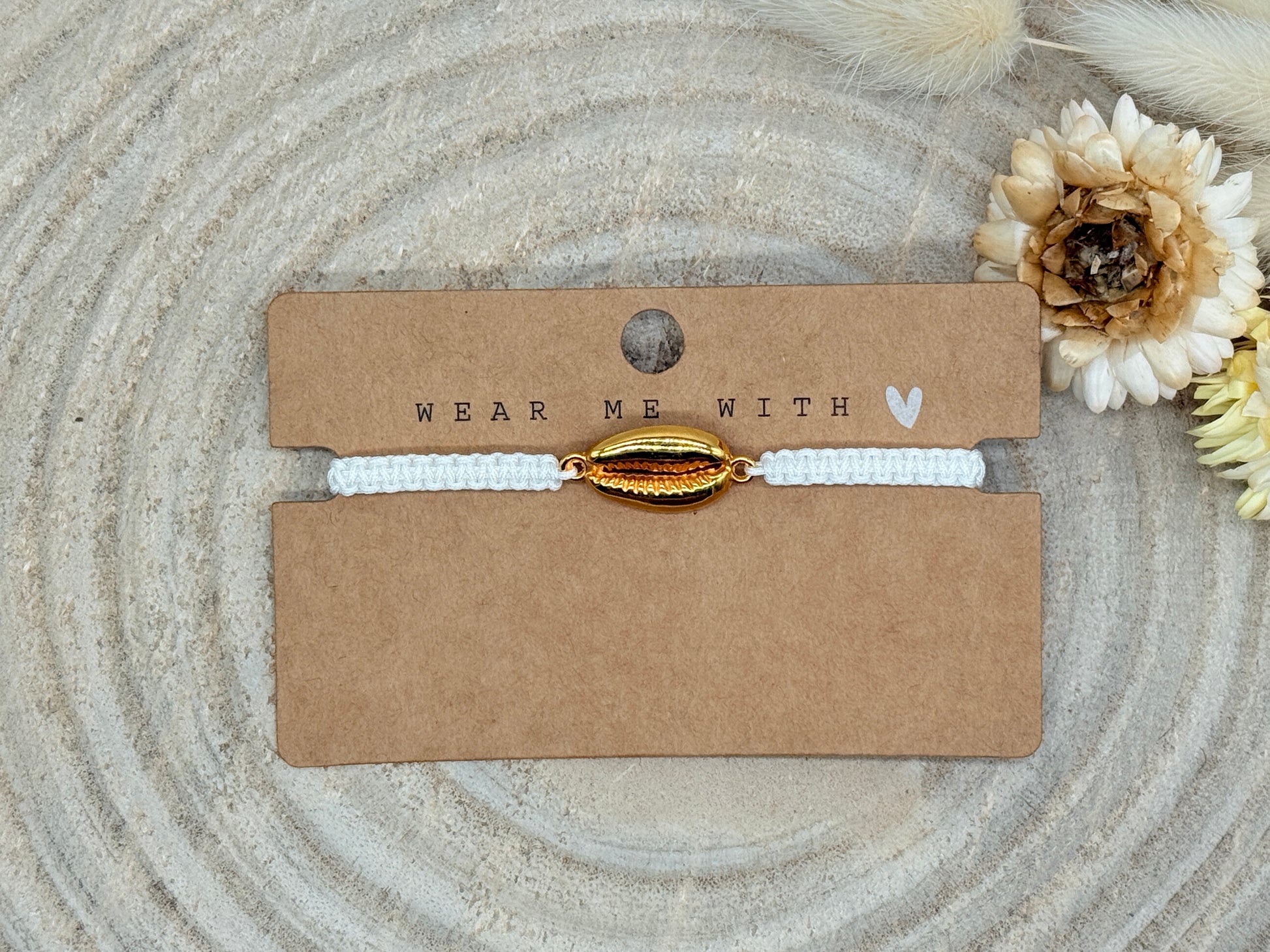 Makramee Armband Freundschaftsarmband Muschel groß Edelstahl vergoldet